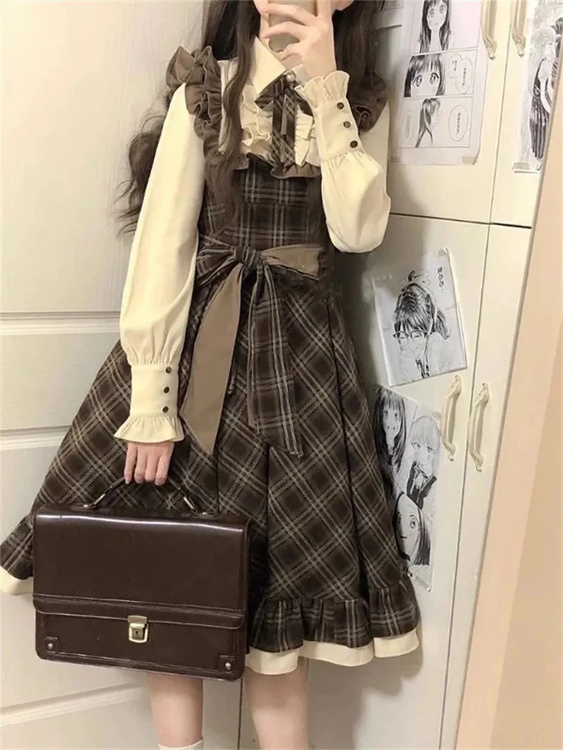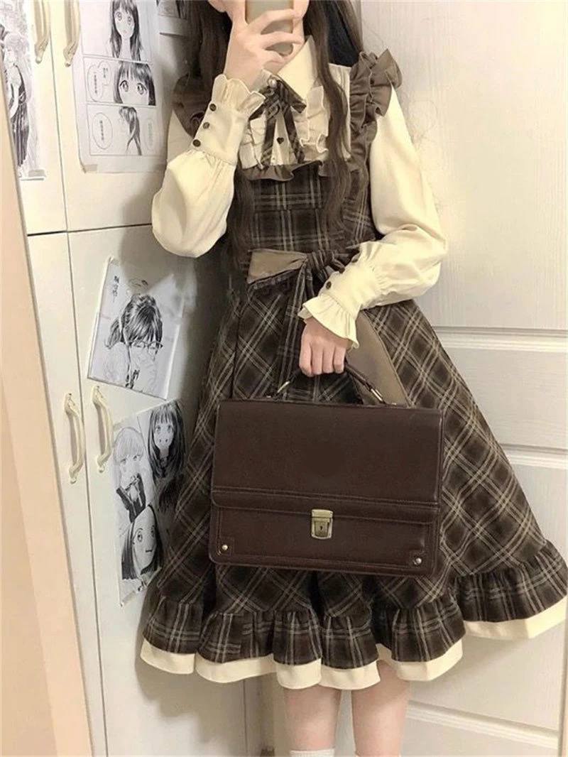 Designed for the woman who delights in the details, this dress combines the timeless allure of plaid with the modern twist of a faux two-piece cut. The delicate bow and structured polo neckline add a touch of preppy sophistication, perfect for those crisp autumn days that call for a seamless blend of comfort and style.