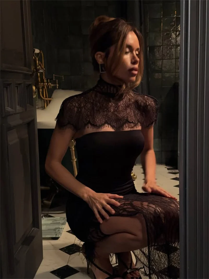 This isn't just a dress; it's a statement of elegance and confidence. Crafted for moments that demand to be memorable, the Twilight Allure Dress is your companion in crafting unforgettable experiences. Its body-hugging silhouette promises to highlight your curves gracefully, while the unique turtleneck adds a touch of mysterious charm.